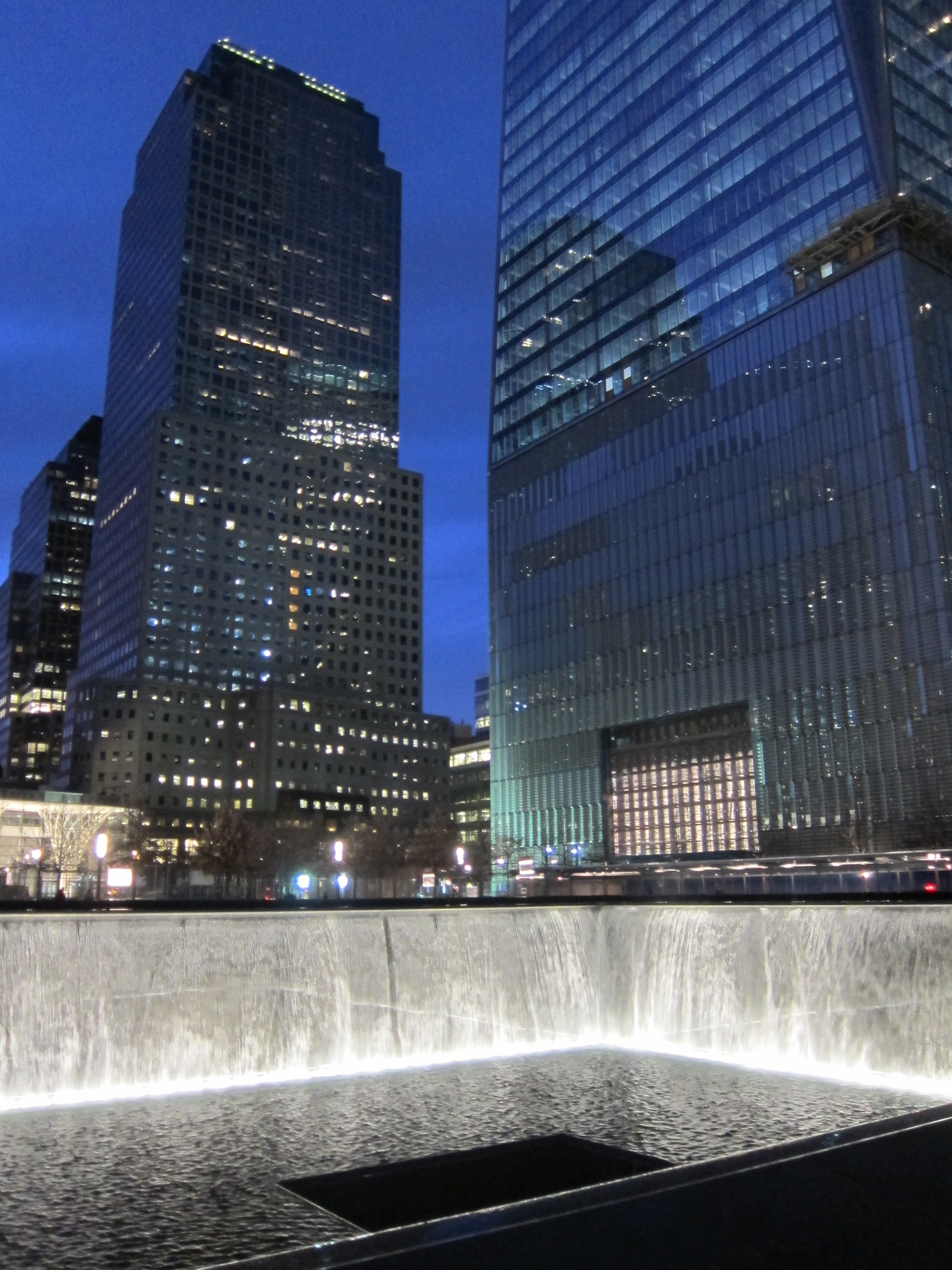 911 Memorial – Essentially, there were two giant fountains where, unlike traditional fountains that shoots water upwards, the water is pouring downwards. As if there were some sort of suction deep down that drains away the water, which I think is really sad. As if there is a black hole deep down in every victim’s friends and family where they throw in their memories and happiness, that is forever gone along with their deceased loved ones. As the sun set, a thin layer of the last ray of light casted over the buildings in a sad and ominous red. When I first noticed it, I could not help but saw it as a symbol of blood. (Perhaps a result of taking World Lit classes this semester.) I remember this taxi driver from NJ told me that his best friend, a fireman, died in 911 and he never quite got over it even after that many years. This also reminded me of a movie I watched alone, Extremely Loud and Incredibly Close. I cried so much it was definitely a good decision to have went alone.